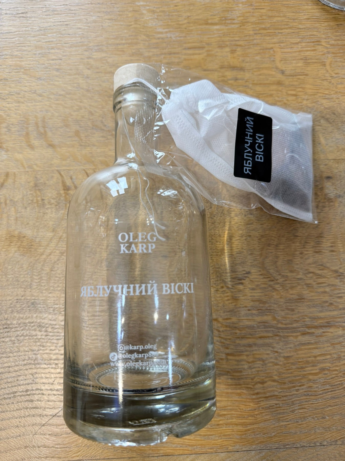 Набір для створення м’якого яблучного віскі з виразними фруктовими нотами. У комплекті брендована пляшка OLEG KARP та фільтр-пакет зі спеціями й компонентами, які формують теплий аромат стиглого яблука, легку деревність і округлий смак.